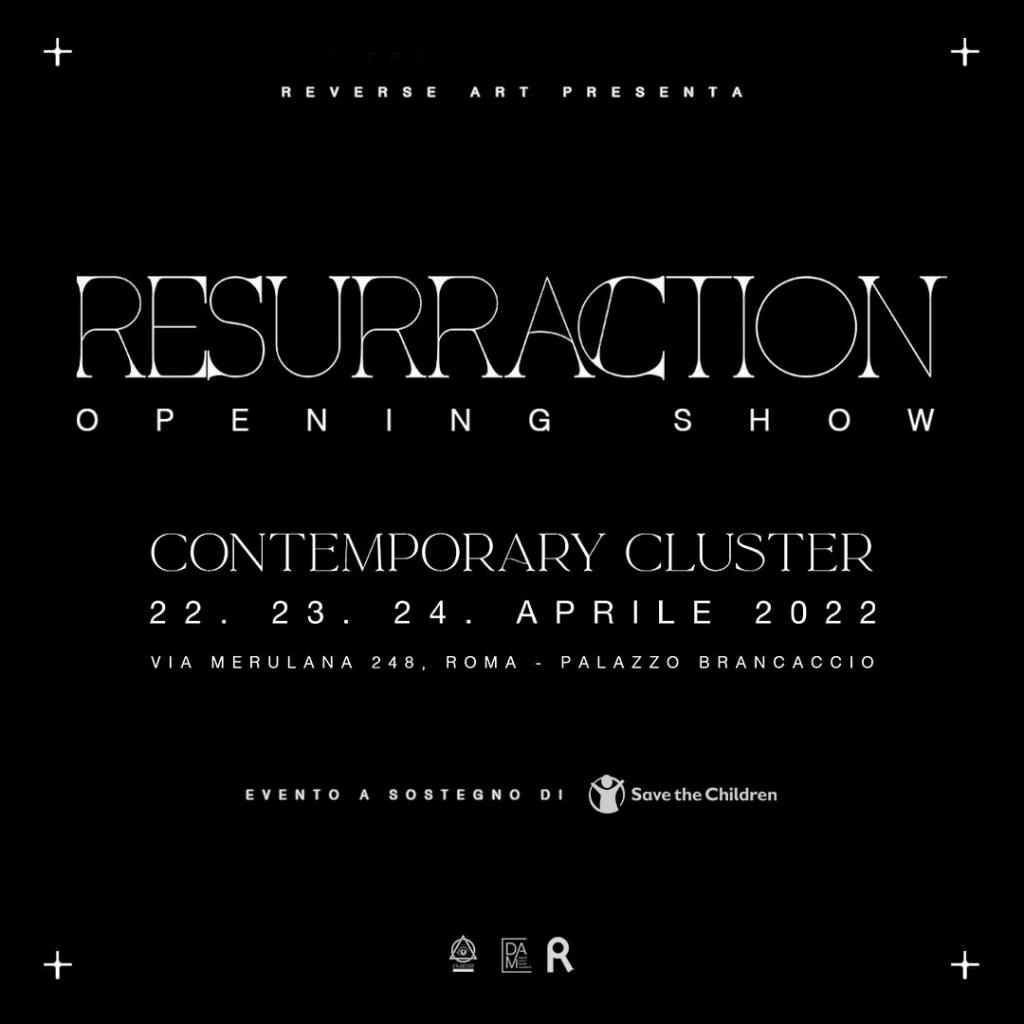 “ResurrAction” è il tema della mostra a scopo benefico che si svolge a Roma dal 22 al 24 aprile presso lo spazio Contemporary Cluster a Palazzo Brancaccio. Un’iniziativa che spinge 35 artisti di risonanza internazionale verso un’unica direzione, quella di sostenere attraverso la propria arte, il progetto “Emergenza Bambini in Ucraina” di Save The Children. Opere di arte contemporanea interpretano il tema della rinascita attraverso la metamorfosi dei suoi stadi evolutivi, fino alle fasi di azione e cambiamento. Un percorso che incarna il dualismo tra passato e futuro, prima e dopo, disagio e cambiamento, morte e rinascita.