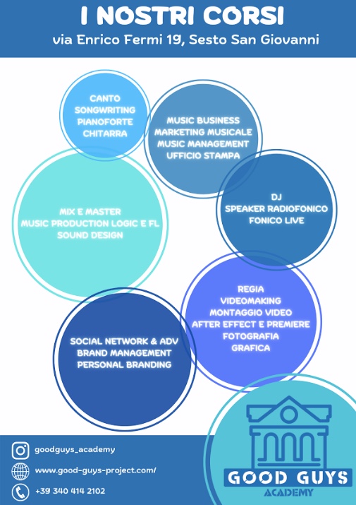 Diverse saranno le discipline oggetto di studio, così come eterogenei sono gli ambiti di cui l’agenzia si occupa. Alcuni corsi saranno infatti tenuti da artisti gestiti e promossi da Good Guys: